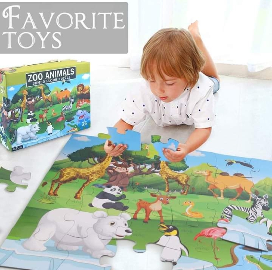 The 35 Pieces Zoo Animal Jumbo Puzzle introduces kids to popular zoo animals while encouraging focus and teamwork. With durable pieces and colorful illustrations, it supports problem-solving, hand-eye coordination, and memory development. Perfect for group play on the floor at schools or at home.